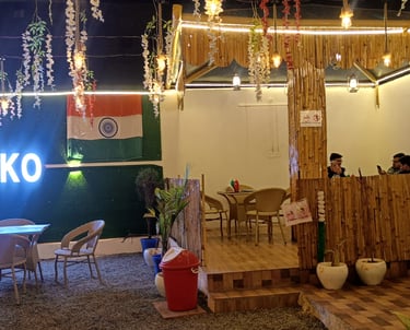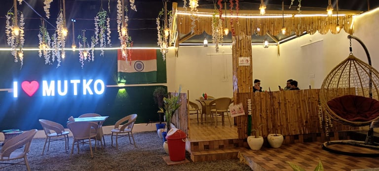 Dholpur's cozy open-air cafe with private cabins, garden seating, and a safe, relaxed vibe near the local police station.